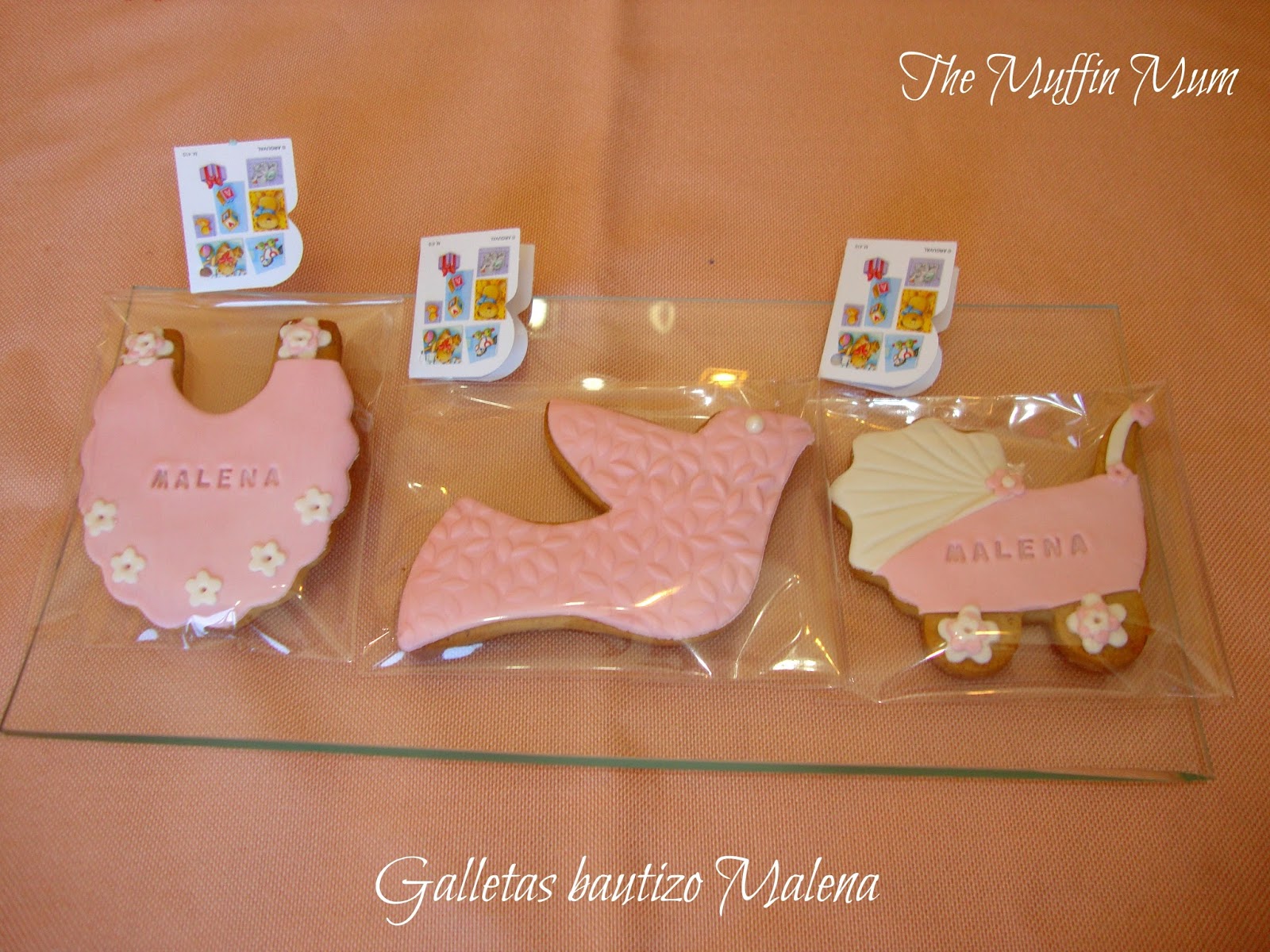 Ya tuve el placer de hacer la tarta para la Baby shower de Malena y ahora su mamá me encargó unas galletas para repartir el día de su bautizo.